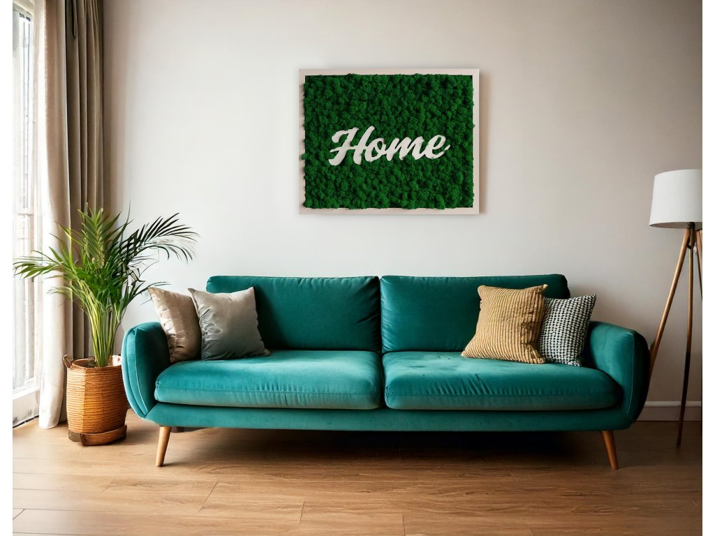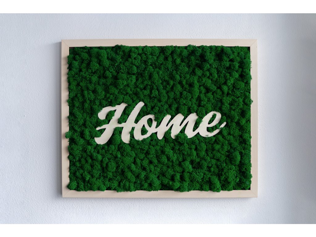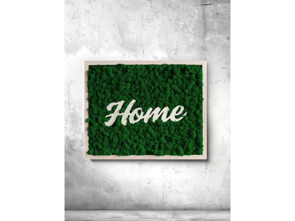 Machový obraz s nápisom Home je moderná dekorácia do interiéru, ktorá nevyžaduje žiadnu starostlivosť. Je vyrobený zo 100 % prírodného stabilizovaného machu, ktorý si dlhodobo udrží sýtu farbu aj prirodzený vzhľad. Drevo a mach vytvárajú jednoduchú, ale výraznú kombináciu, ktorá sa hodí do bytu, domu, kancelárie a všade tam, kde chcete vytvoriť útulnú, domácu atmosféru pomocou prírodných materiálov.
