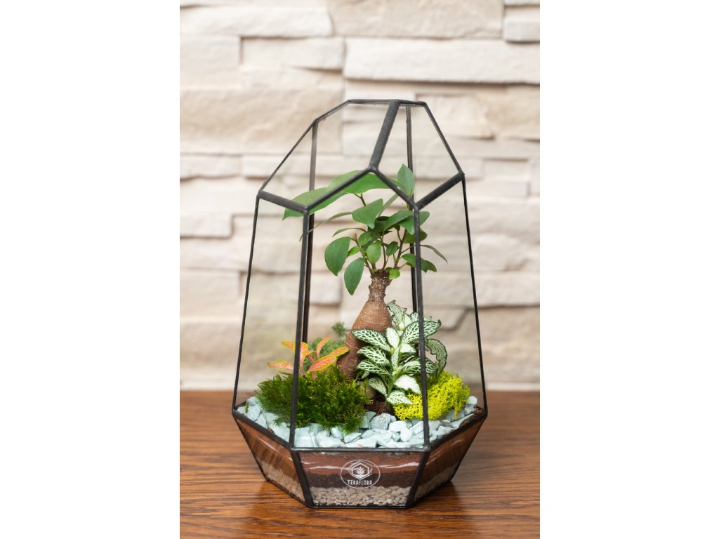 Geometrické sklenené rastlinné terárium s fikusom je pekná dekorácia ktorá prinesie do vášho domova alebo kancelárie kúsok prírody a zároveň vyzerá veľmi moderne.  Terárium je vhodné aj ako jedinečný darček pre každú príležitosť