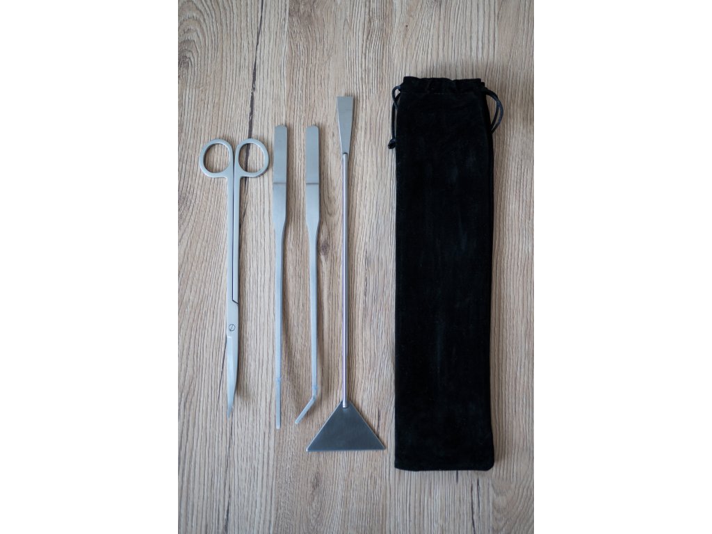 Kvalitná 4-dielna sada nástrojov z ocele je určená na sadenie a úpravu rastlinných terárií, ako aj ďalších izbových rastlín.