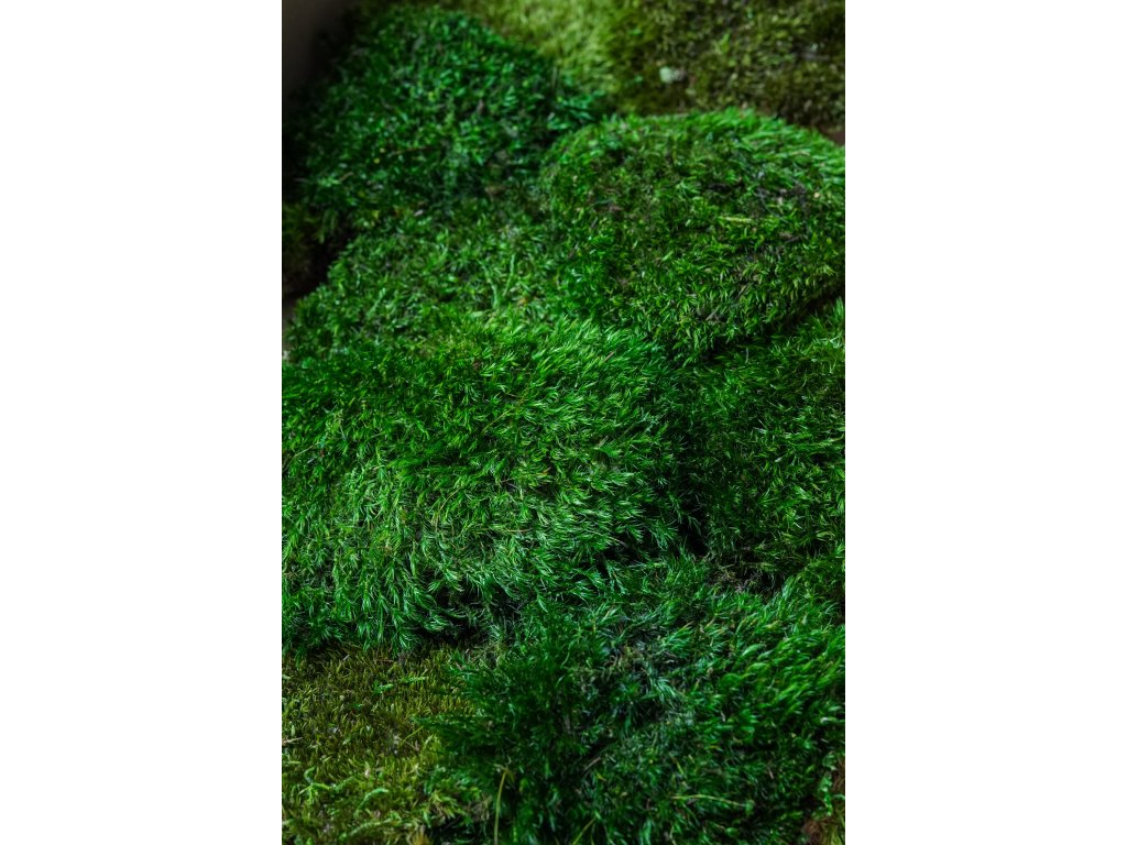 Prírodný stabilizovaný kopčekový mach "Velvet" vysokej kvality, prírodnej zelenej farby, ideálny na moderné interiérové dekorácie, machové obrazy, panely, logá a dizajnové steny. Mach pochádza z Francúzka a prešiel procesom stabilizácie, vďaka ktorému si zachováva prírodný vzhľad bez polievania, svetla či špeciálnej starostlivosti.