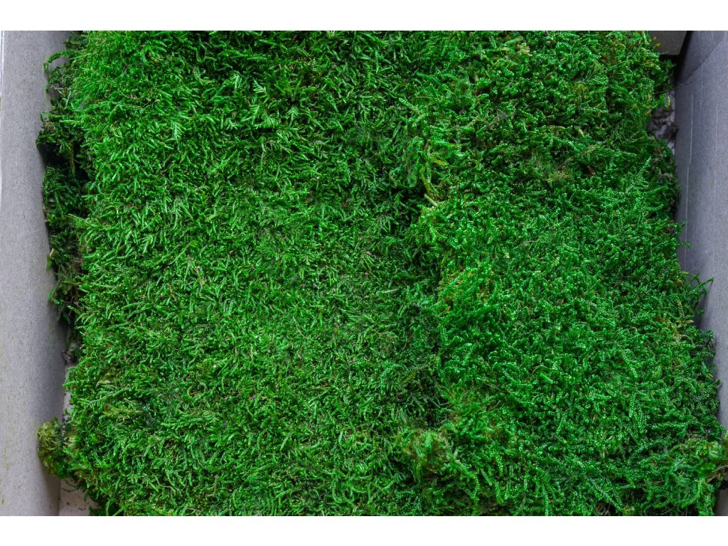 Stabilizovaný plochý mach tmavšej zelenej farby, pochádzajúci zo švédskych lesov, ideálny na machové obrazy, steny, panely a dizajnové interiérové projekty. Mach prešiel procesom stabilizácie, vďaka ktorému si zachováva prírodný vzhľad bez polievania, svetla či špeciálnej starostlivosti.